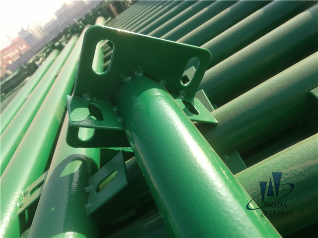 浸塑護(hù)欄網(wǎng)工藝:護(hù)欄網(wǎng)通常使用的防腐方式為粉末浸塑法,它起源于流化床法,所謂的流化床最初是在溫克勒氣體發(fā)生爐上應(yīng)用于石油接觸分解,進(jìn)而開發(fā)了固氣兩相接觸工藝,后逐漸用于金屬涂塑方面。所以有時(shí)仍叫“流化床包覆法”,實(shí)際過(guò)程是把粉末涂料加入底部多孔透氣的容器(流動(dòng)槽)中,由鼓風(fēng)機(jī)從下送入經(jīng)過(guò)處理的壓縮空氣,使粉末涂料翻動(dòng)達(dá)到“流化狀態(tài)”,成為均勻分布的細(xì)散粉末。浸塑護(hù)欄網(wǎng)的浸塑工藝由兩個(gè)階段來(lái)完成:第一階段為固定床階段,第二階段為氣流輸送階段,在固定床的基礎(chǔ)上繼續(xù)增大流速(W),床層開始膨脹和松動(dòng),床層高度開始增加,每個(gè)粉末顆粒被浮起,因而離開原來(lái)位置作一定程度的移動(dòng),這時(shí)便進(jìn)入流化床階段。bc段說(shuō)明流化床內(nèi)粉層膨脹,其高度(I)隨著氣體速度的增大而增加,但床內(nèi)壓強(qiáng)(△P)并不增大,在一定范圍內(nèi)變動(dòng)流速而不影響流體所需的單位功率,這是流化床的特征,正是利用這一特點(diǎn)來(lái)進(jìn)行涂裝工藝實(shí)施的。流化床內(nèi)粉末流化狀態(tài)的均勻性是保證涂膜均勻的關(guān)鍵,浸塑時(shí)間越長(zhǎng)、涂層越厚。涂層厚度可達(dá)0.8-1.0mm。