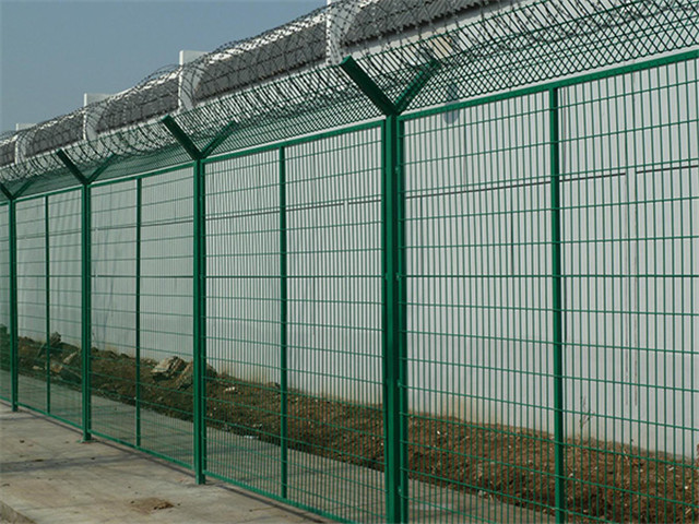 防攀爬防護(hù)欄網(wǎng)多用于監(jiān)獄,起到一個(gè)防攀爬,防犯人越獄的效果,他可以用普通的護(hù)欄網(wǎng)片,柱選“Y”型立柱,在頂端放置刀片刺繩,也有選擇網(wǎng)片是太陽(yáng)花式的,還有選擇刺繩做的。