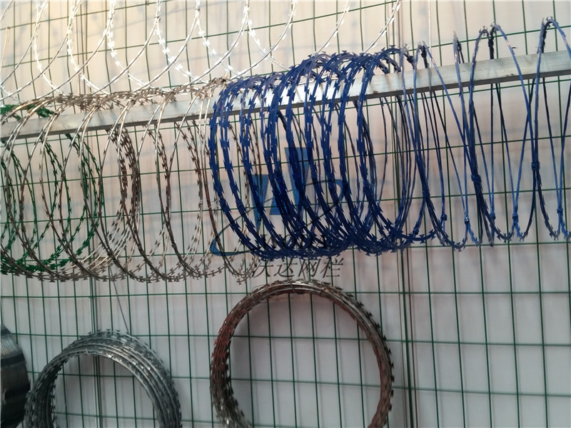 圍墻刀刺網(wǎng)圍欄也稱為刀片刺絲、刀片刺網(wǎng),是一種新型圍墻護(hù)欄網(wǎng)產(chǎn)品。它具有嚇阻效果好、美觀、施工便利,經(jīng)濟(jì)實(shí)用等優(yōu)異特點(diǎn)。主要用于園林公寓,機(jī)關(guān)單位,監(jiān)獄,哨所,邊防等的圈禁防護(hù)。
