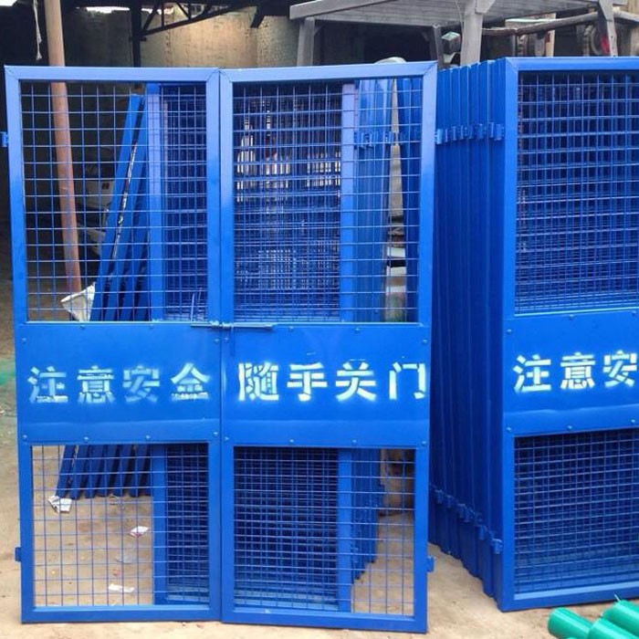 施工電梯門一般采用鋼絲網(wǎng)焊接或與鋼管、鐵板焊接而成。主要用于建筑物外電梯的安全防護(hù)。風(fēng)格和顏色可根據(jù)施工方的要求定制。高度一般為1.8米,寬度一般為1.3米和1.5米。